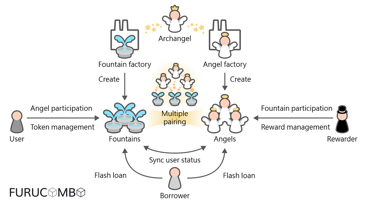 Archangel: This contract records the relationship between the Fountain and Angel, and manages the configuration of the flash loan-related functions.